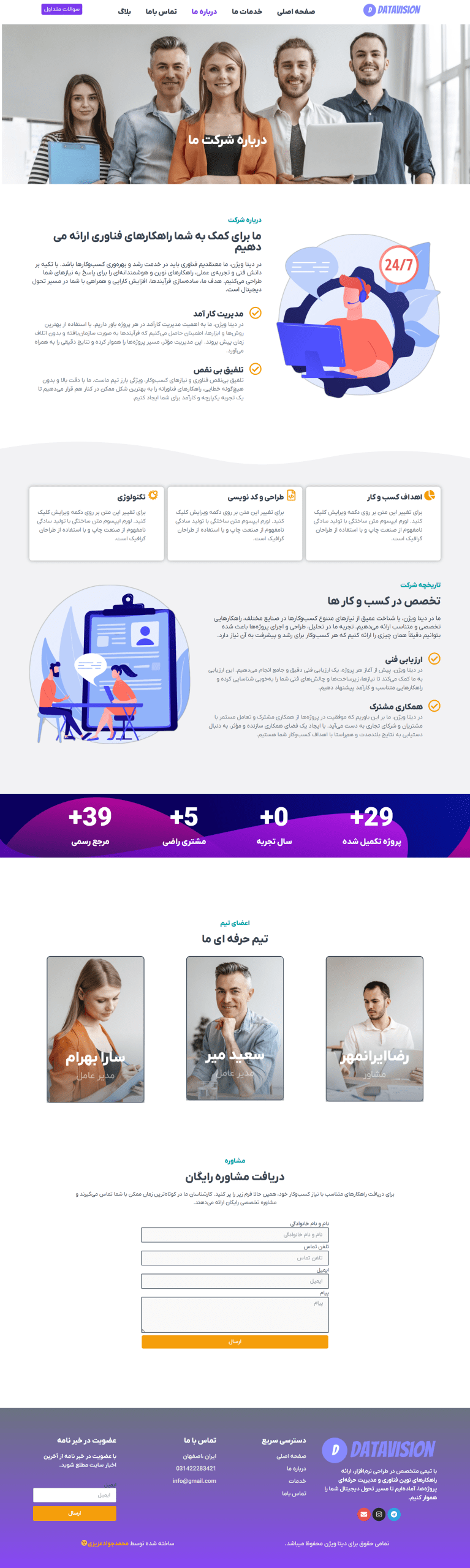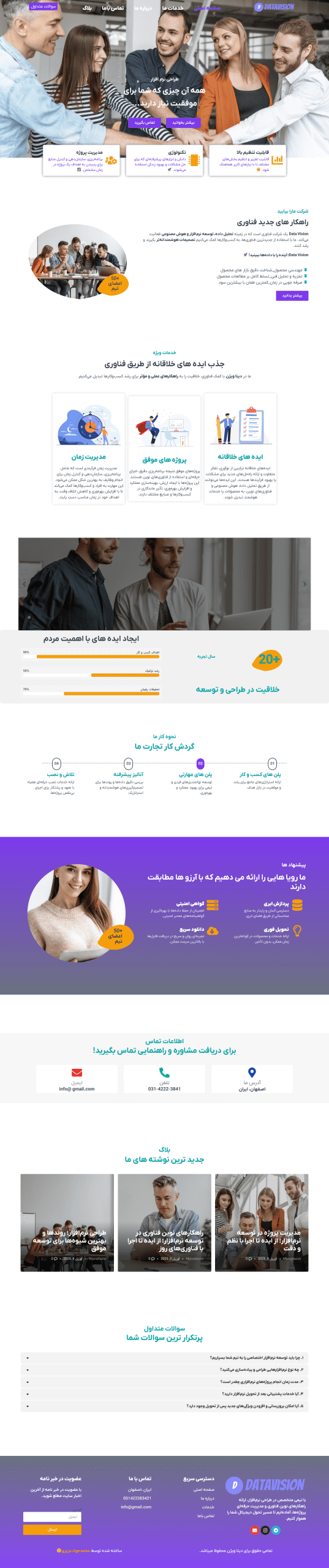 این سایت برای برند DataVision طراحی شده تا خدمات تحلیل داده، توسعه نرمافزار و راهکارهای نوین فناوری رو بهصورت حرفهای به مخاطبان معرفی کنه. طراحی با تمرکز بر وضوح اطلاعات، ساختار منظم و تجربه کاربری مناسب انجام شده تا بازدیدکننده بهسرعت با خدمات و ارزشهای برند آشنا بشه. 💡💻